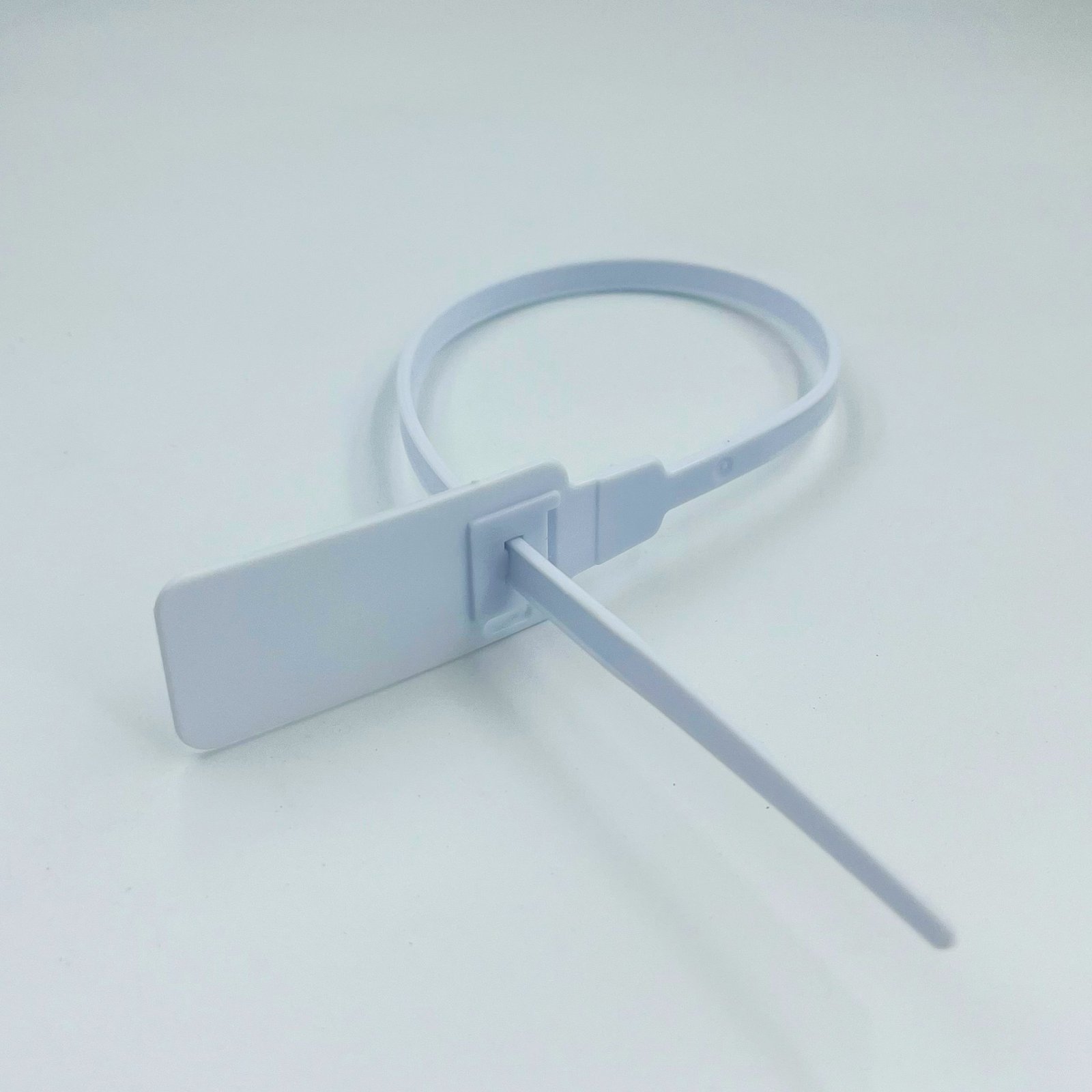 Material PP (polypropylene) Lock core: sheet metal Dimension belt diameter 2.0 mm label size:16x42 mm work length 183mm Printing & Marking Laser / Hot Stamp Name / Logo Sequential Numbering Applications Clothing,shoes,bags,boxes etc Properties Average Breaking Strength : >30KG Packing Packaging: 2000pcs/Carton Carton Dimensions: 440X220X230mm N.W :4.5KG G.W : 5KG
